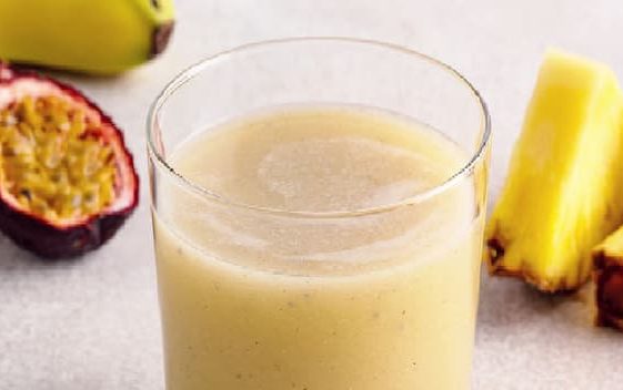 מערבבים בבלנדר נתחי אננס קפואים, יוגורט רגיל, חלב שקדים ו-1 כפית דבש. מערבבים עד שהתערובת חלקה ובעלת מרקם קצפי.