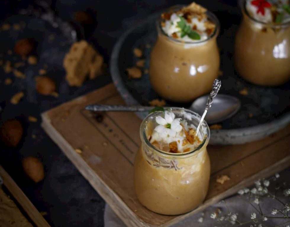 ניתן להגיש את המוס יכולים עם מעט קצפת למעלה ופירורי נוגט.