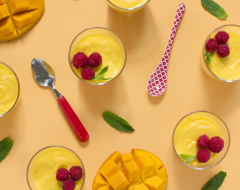 מקציפים את חלבוני הביצים עם הסוכר, ומוסיפים את תערובת המנגו המצוננת בזהירות – כל פעם מעט, ובוחשים.