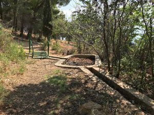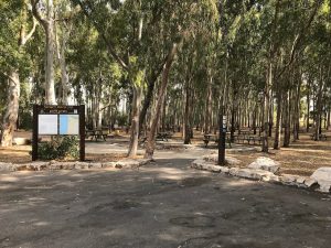 בחניון הלוחמים פזורים כעשרה שולחנות פיקניק בצל עצי אלון התולע שניטעו במסגרת נטיעה של החורשה ממערב לתל שיפון.