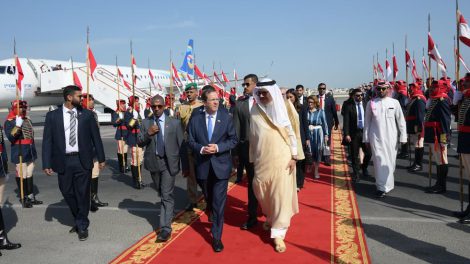 נשיא המדינה יצחק הרצוג נחת ביום ראשון, י' בכסלו, 4 בדצמבר, בממלכת בחריין, במסגרת ביקורו הממלכתי הראשון בבחריין.