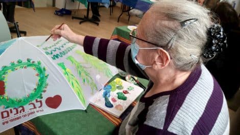 תערוכה חדשה מוצגת בלובי האמנים של דיור מוגן לב גנים במסגרתה ציירו הדיירים על מטריות וקישטו אותן בעיטורים שוני