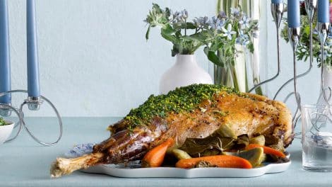 רכיבים: 1 שוק טלה 1 צרור רוזמרין חוט קשירה שמן זית מלח פלפל מילוי: 4 כפות שמן זית 2 בצלים קצוצים גס 250 גרם בשר טלה טחון 100 גרם פיסטוק קלוי חצי כף...
