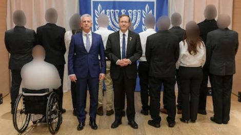 נשיא המדינה יצחק הרצוג וראש המוסד דוד ברנע העניקו היום, יום שני, כ״ט בכסלו, 30 בדצמבר, תעודות הצטיינות ל-12 עובדות ועובדי המוסד למודיעין ולתפקידים...