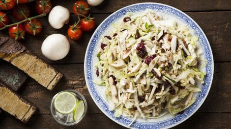 מצרכים: 1/2 כרוב לבן 1/2 כוס פקאנים מסוכרים 1/4 כוס צנוברים (לא חובה) 1/2 סלסלה פטריות שמפיון או בייבי פורטבלה 1/2 כוס חמוציות או אוכמניות מיובשות...