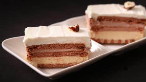 עוגת ביסקוויטים וגבינה בשלושה טעמים - חמאת בוטנים, ממרח נוגט ושוקולד לבן, בשימוש ממרחי הגבינות הטבעוניות בסגנון שמנת של משומשו, טעימה להפליא ונהדרת...