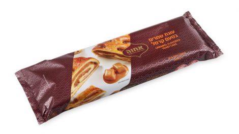 עוגה מבצק שמרים נימוח במילוי עשיר של קרמל, מצטרפת לסדרת המאפים הביתית של אחוה הכוללת עוגת שמרים שוקולד, קינמון ופרג