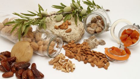פירות יבשים הם פירות טריים שהתייבשו, הם נפוצים וכוללים שקדים, אגוזי מלך, צימוקים, שזיפים מיובשים, ופירות נוספים הזמינים בשווקים ובחנויות.