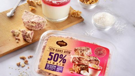 חלוה בטעם מלבי מכילה קוקוס קלוי, שברי אגוזים, מי ורדים וצבע אדמדם על בסיס טבעי, המעניקים לחלוה ארומה מיוחדת וטעם של הקינוח המוכר והאהוב • החלוה בעלת...