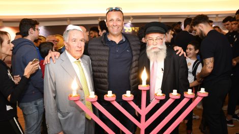 בכירי קפה גרג, בראשם יאיר מלכה, גלעד אלמוג וניר אדרי – מבעלי הרשת, עו"ד שמעון מזרחי והנהלת ושחקני קבוצת מכבי תל-אביב פוקס בכדורסל,חגגו את הדלקת נר...