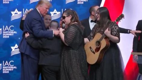 בנות להקת שלוה: ענאל כליפה, דינה סמטה ושרה סמואלס לבשו שמלות של המעצב דרור קונטנטו להופעה מול הנשיא ארה"ב דונלד טראמפ, בכנס השנתי של ארגון IAC...