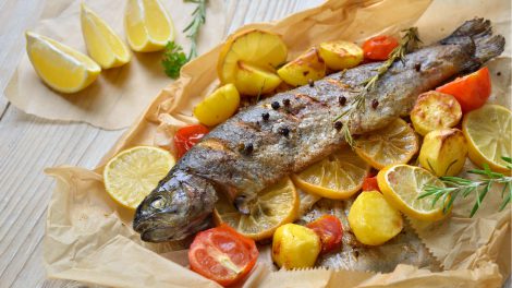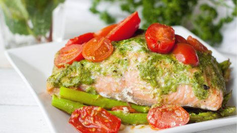 מרכיבים: דג סלמון פרוס (200 גרם) 1-2 שיני שום 1/4 כוס מיץ לימון טרי עלי בזיליקום טריים 1 כפית שמן זית חצאי עגבניות שרי מלח, פלפל אופן הכנה: הכנת...
