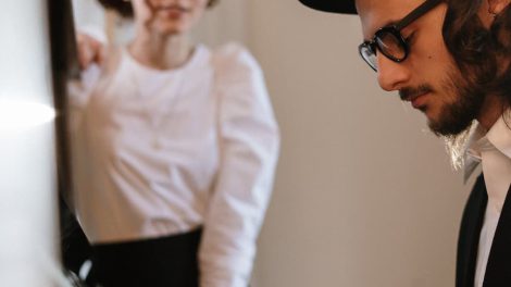 הוא נכנס ועל ראשו שטריימל מרשים. גופו עטוף ברעקל שחור ארוך ומהודר המדגיש את גובהו,מתחת לכל המעטה השחור הרציני והכבד מסתתרות פנים של גבר צעיר נאה...