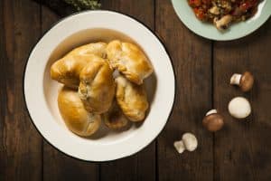 מתכון מפנק – רביולי עם שומר צלוי, גבינת עיזים וארוגולה טעמי האניס של השומר, המרירות העדינה של הארוגולה הטרייה והמתקתקות המעודנת של הרביולי ושל גבינת העיזים...