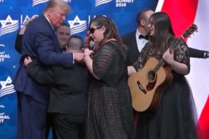 בנות להקת שלוה: ענאל כליפה, דינה סמטה ושרה סמואלס לבשו שמלות של המעצב דרור קונטנטו להופעה מול הנשיא ארה"ב דונלד טראמפ, בכנס השנתי של ארגון IAC שהתקיים אמש...