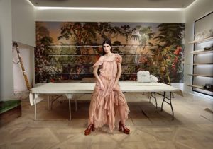 על הקירות נפרשים טפטים עבודת יד של בית אמנות אירופאי: טפט NAMBAN, שאב השראה מטכניקת אמנות יפנית מסורתית מהמאה ה-16 סגנון שנולד במפגש בין יפן למערב, עם עושר דקורטיבי, גוונים זהובים ותיאורי טבע ותרבות. לצידו, טפט L’EDEN מציג קומפוזיציה של גנים, צמחייה ובעלי חיים על נייר מצופה Rose Gold בגימור antiquing חלל שמרגיש כגן עדן מודרני שבו אופנה וטבע חיים זה לצד זה.בחדרים הקלאסיים הונח פרקט Versailles Parquet, המוכר מארמונות אירופה, בחיתוך אלכסוני המחווה לתנועה הנצחית של עולם האופנה. רהיטי וינטג’ שהוטסו ממערב אירופה, תאורה רכה וחמה, וחללי קמרון בהשראה צרפתית שקיבלו פרשנות מודרנית דרך נירוסטה וגימורים מדויקים כולם יוצרים יחד דיאלוג עדין בין עבר להווה.אזור הקופות עוצב אף הוא כחלל עצמאי, עם אבן ייחודית מסוג Iceberg Blue שהובאה מברזיל. הטקסטורה הקריסטלית וגווניה הקרירים יוצרים קונטרסט מכוון ומדויק לפלטה החמה שאופפת את שאר המתחם.