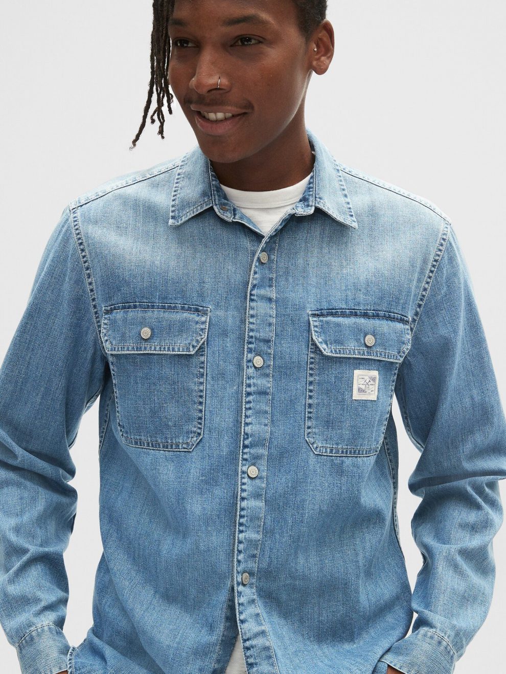 טרמינל איקס, מותג גאפ, חולצת גינס מכופתרת עם כיסים באדיבות גאפ