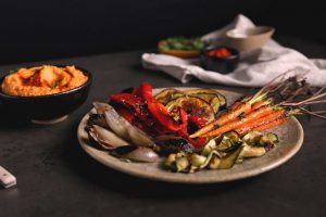 ירקות צלויים על מצע חומוס מעגבניות רכיבים לירקות הצלויים: פלפל אדום קישוא 7 גזרים גמדים 4 בצלי שאלוט חציל שמן זית כתית מלח לפי הטעם טימין טרי רכיבים לחומוס...