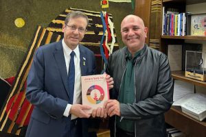 נשיא המדינה יצחק הרצוג נפגש עם הסופרים פנחס (פיני) שרי ובנו אלדד שרי, שהציגו בפניו את ספריהם "נעילה" "בחברות ובאהבה"והעניקו לו אותם.