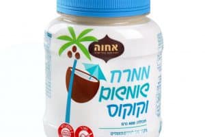 ממרח שומשום וקוקוס של "אחוה" מכיל קוקוס וטחינה גולמית, מהווה מקור טוב לסיבים תזונתיים ומתאים לטבעונים • הממרח ללא שומן דקלים או סויה ונפלא למריחה על לחם ולאפייה