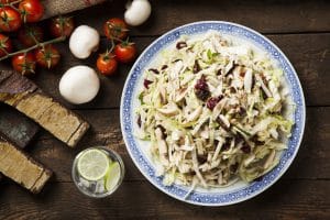 מצרכים: 1/2 כרוב לבן 1/2 כוס פקאנים מסוכרים 1/4 כוס צנוברים (לא חובה) 1/2 סלסלה פטריות שמפיון או בייבי פורטבלה 1/2 כוס חמוציות או אוכמניות מיובשות 1/2 צרור עלי...