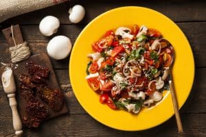 מצרכים: סלסלת עגבניות שרי, עדיף מזן תמר סלסלת פטריות שמפניון 15 עלי בזיליקום 8 עגבניות מיובשות 1/2 בצל סגול 10 ענפי עירית או 5 ענפי בצל ירוק או צרור עלי...