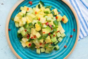 מתכון לסלט צבעוני, עשיר בטעמים ובשילוב נהדר של פירות וירקות: סלט אננס, אבוקדו ומלפפונים. הסלט מזין וטעים, קל להכנה, מורכב מפירות העונה