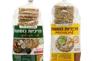 "פריכיות כוסמת עם ספירולינה" ו"פריכיות כוסמת עם כורכום". הפריכיות, המיוצרות בישראל בחברת "זנבר", הן פרי פיתוחו של ד"ר עקיבא זנבר והן ללא מלח, חומרים משמרים...